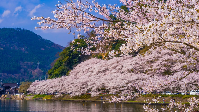 以太陽之塔而聞名的「萬博紀念公園」被選為「日本賞櫻名勝百選」之一。每年從3月中旬開始,彼岸櫻和寒緋櫻相繼開放,到了4月,又有染井吉野櫻將整個公園裝點得美輪美奐。在廣闊的園區內共有9種不同品種的櫻花,可以仔細觀察各種櫻花不同的魅力與特色,讓賞花變得更加有趣。