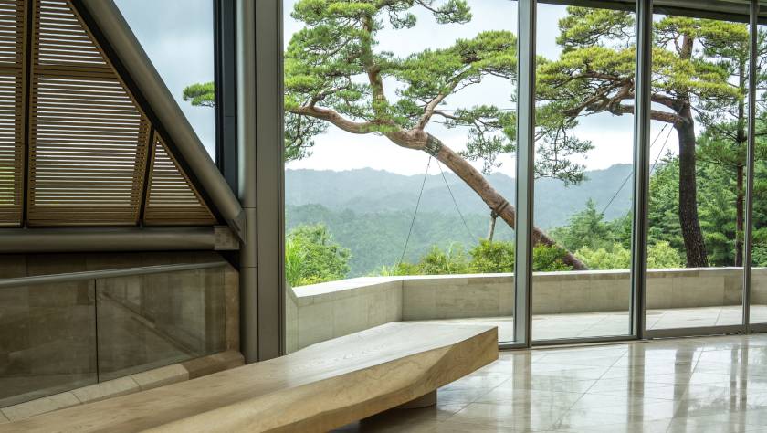 位於滋賀縣信樂的MIHO MUSEUM,由貝聿銘設計,宛如世外桃源。穿越500公尺山谷隧道,進入90萬㎡巨大空間,融合自然與古代藝術品(埃及、希臘等)。也是賞櫻名所,提供尊榮藝術之旅。