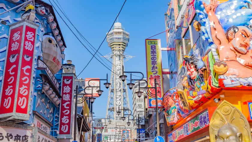 早餐後,前往南區的天王寺地區,擁有以「通天閣」為地標的「新世界」,在地小酒吧和小吃店雲集,能以相當便宜的價格品嚐到串炸等大阪在地美食。此外還有日本最高(高300公尺)的「阿倍野」,從頂層的觀景臺可一望大阪市區。
