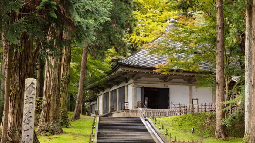 始建於西元850年,為世界文化遺產,珍藏逾3,000件國寶與重要文化財。此寺院旨在祭祀東北地區戰亂中的亡靈,傳達和平願望。寺內最引人注目的是「金色堂」,其建築與佛像閃耀金光,宛如精美藝術品。