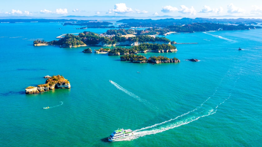 宮城縣的松島譽為日本三景之一,其景色在觀光地之中也十分熱門。推薦行程是搭乘繞松島灣一圈的遊覽船,從松島觀光棧橋出發,體驗繞巡灣內一圈的小島巡禮。