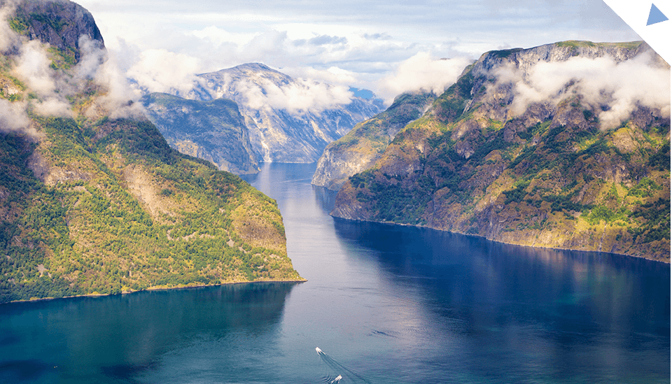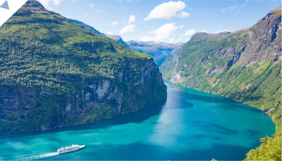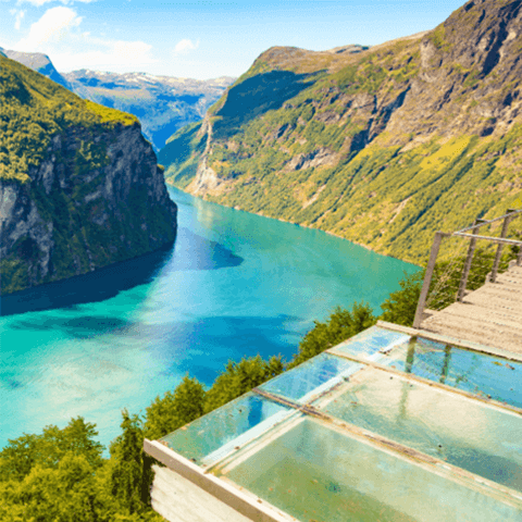 挪威以其西部沿海峽灣聞名於世,國家地理雜誌於2009年時將挪威峽灣評為全世界最美的旅遊地。自高空俯瞰峽灣地形,陸地就像被一條條的裂縫從海岸處劃下,為北歐西部的地圖板塊增添了質感和深度,周圍的峽灣村莊既美麗且幽靜。