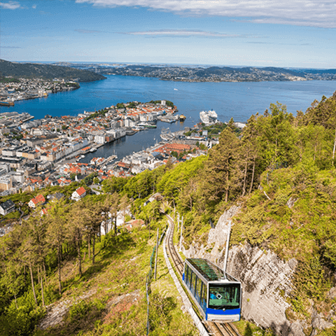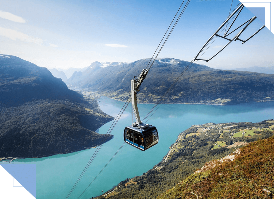 前往海拔1,011米的峽灣頂,俯瞰羅恩城市全景與周邊群山峽灣景色,天氣晴朗時甚至可以看到遠處的對岸峽灣全景。