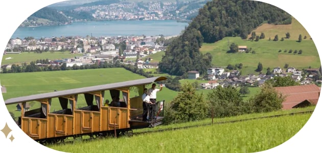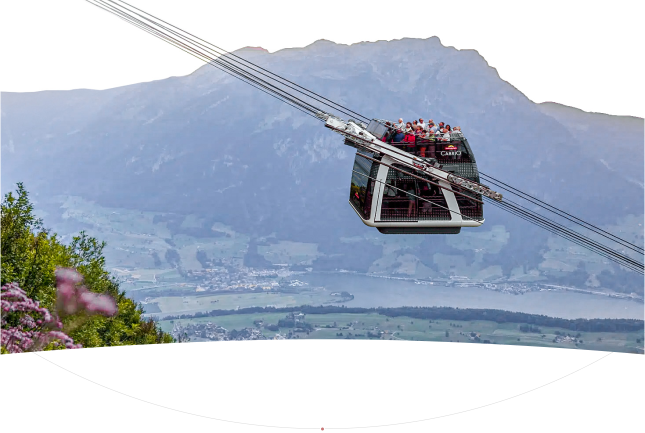 搭乘全球首部敞篷雙層纜車,觀賞琉森湖地區的美麗景致。