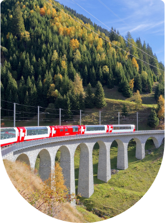 翻過高山、越過山谷,紅色的伯尼納鐵道快車,帶您飽覽沿途最美的山河景色。