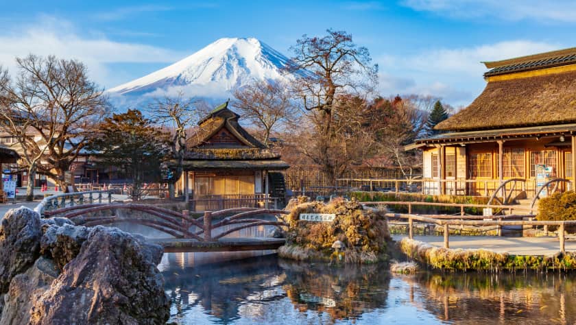 位於山梨縣的忍野八海,是由富士山伏流水形成的八個清澈湧泉池;此地水質純淨,被譽為日本名水百選之一。搭配富士山倒影與傳統村落景觀,是欣賞自然與拍攝絕美風景的熱門景點。