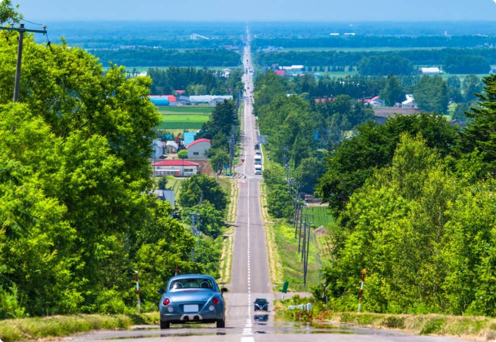 特別走一趟被稱為「通往天際的直線大道」的國道334號,這段長約28.1公里的天空大道,兩側是廣闊田園與知床群山,遠方連接鄂霍次克海,宛如駛向雲端的夢幻公路。沿途登上展望台,可同時俯瞰群山、海景與農田,勾勒出最經典的北海道大地風光,構成本行程最具代表性的打卡畫面之一。