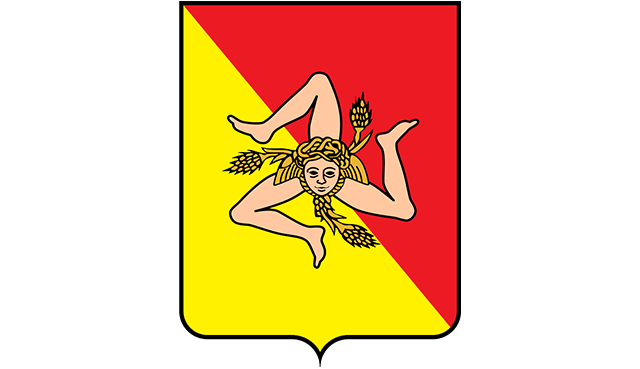 三角形的西西里島,區旗是有著三條曲腿的梅杜莎,三條腿分指島的三個角,以守護這島嶼。雙翼代表永恆的時間流逝,蛇髮代表智慧,卻被金黃色的麥穗取代,表示西西里的富庶。 鮮紅欲滴的番茄就像炙熱的西西里太陽,各式各樣的義大利麵則來自西西里土地上的麥穗,墨綠色的橄欖、翠綠的迷迭香與鼠尾草,這三色豐富了西西里的料理的顏色。