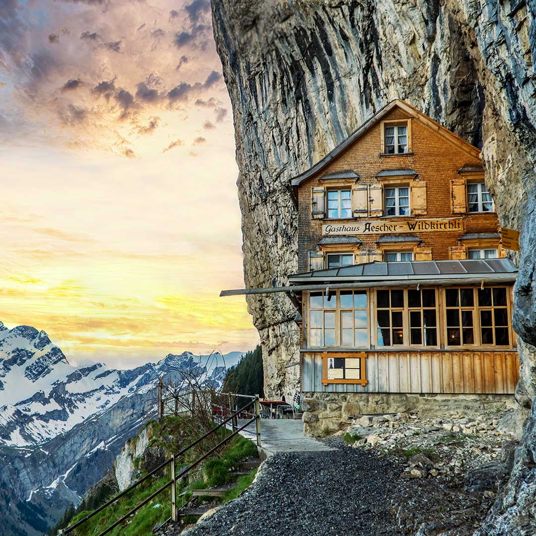 你聽說過坐落於阿爾卑斯山脈,掛在依本立(Ebenalp)懸崖邊緣,宛如天空之城的建築嗎?曾獲登上國家地理雜誌封面的依本立懸崖餐廳(Berggasthaus Aescher) ,以其令人屏息的景觀和美味的菜肴成為了依本利的必經地標。依本立懸崖餐廳